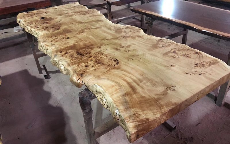 * **Solid Wood Slab:** Constructed from a single, solid slab of poplar burl, ensuring structural integrity and a powerful visual impact.