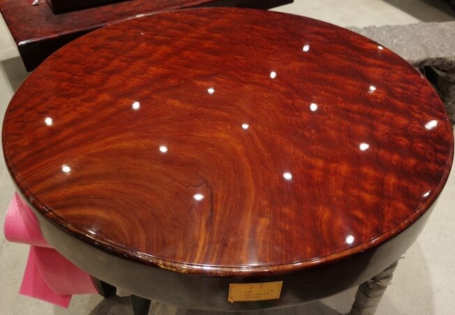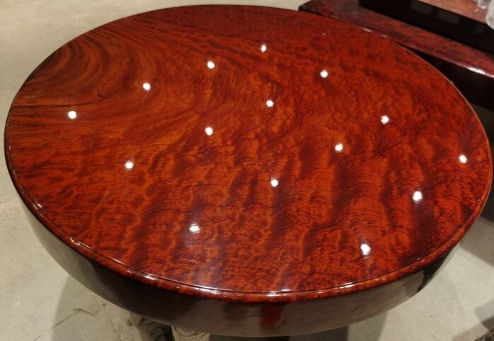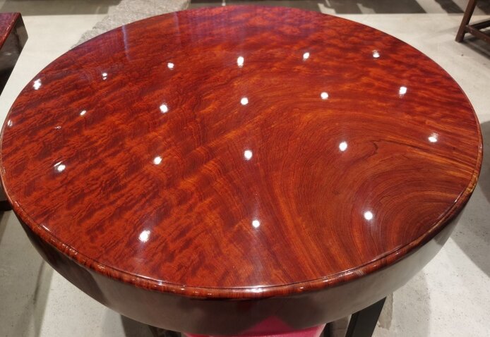 * **Appearance:** Bubinga (scientific name: *Guibourtia demeusei*) is an exotic African hardwood renowned for its beautiful and dramatic figuring. Its heartwood ranges from a pinkish-red to a deep reddish-brown with darker purple or black streaks. The most prized feature is its intricate grain pattern, which can include everything from a fine, uniform texture to wild, swirling "bubble" patterns (pommele) and mesmerizing fiddleback figuring.