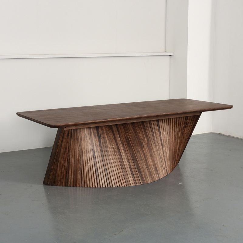 We invite you to experience the "Aurora" Series Solid Zebrano Wood Long Table.
